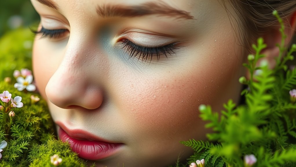 Supporting your skin’s microbial ecosystem begins with key ingredients that nurture beneficial microbes and maintain balance. Look for prebiotics like inulin or plant polysaccharides that serve as nourishment for good bacteria, helping them thrive. Fermented ingredients, such as fermented botanicals or enzymes, can also strengthen the microbiome by providing beneficial metabolic byproducts. Incorporate postbiotics—these are the helpful metabolites produced by probiotics—that soothe inflammation and reinforce your skin barrier. Gentle surfactants and pH-balanced formulas avoid disrupting microbial diversity. Additionally, botanical extracts like centella or chamomile offer soothing, microbiome-friendly benefits without harming beneficial microbes. Using products that support emotional well-being can also positively influence your skin’s health and resilience. By choosing products with these ingredients, you actively support a resilient, balanced skin ecosystem that promotes overall health and radiance.