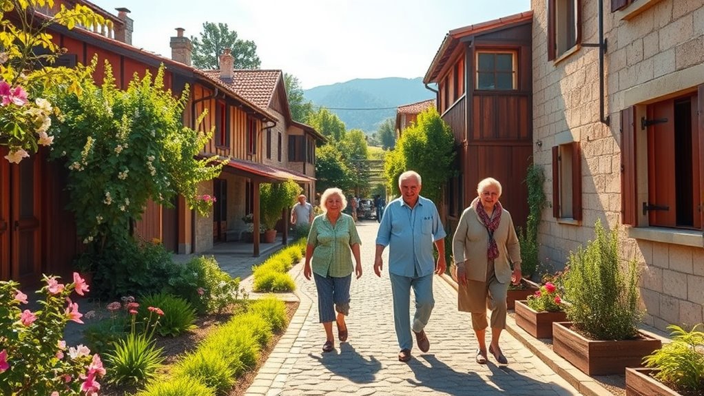An ounce of prevention is worth a pound of cure, and in Blue Zones, communities adapt aging and healthcare by emphasizing prevention and holistic well-being. You’re encouraged to stay active, maintain strong social bonds, and eat nutrient-rich foods. Local healthcare often focuses on community support rather than just treatment, helping residents age gracefully. This approach keeps people healthier longer, proving that proactive habits are key to longevity.