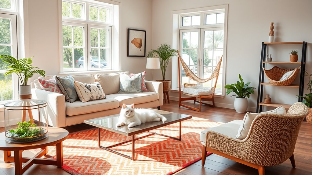 Imagine your home as a cozy canvas where your pet’s playful spirit dances seamlessly with your stylish taste. With thoughtful design choices, you can create a space that’s both pet-friendly and Instagram-worthy—a harmonious symphony of comfort and style. Embrace the balance, knowing your home isn’t just a pretty picture but a lively sanctuary where your furry friend and your aesthetic dreams coexist beautifully. After all, a truly stunning home is one that welcomes both your pet’s paws and your passions.