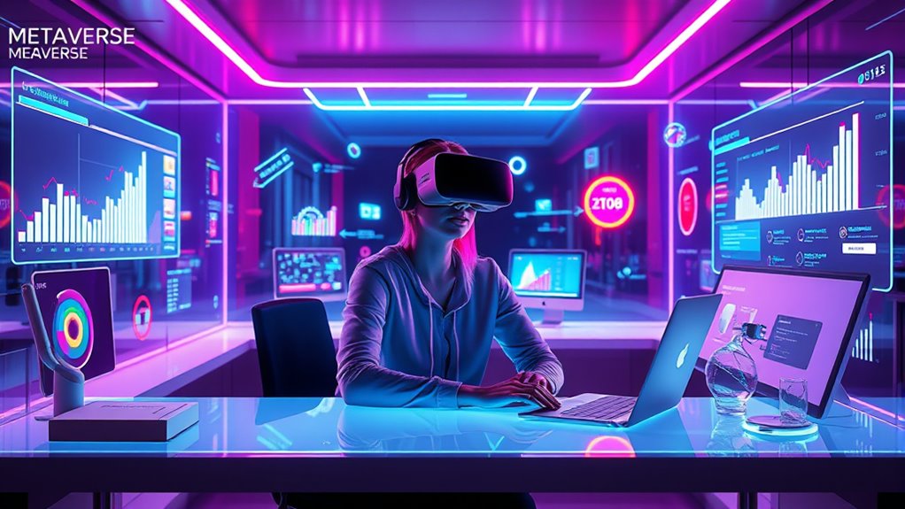The metaverse workplace can boost your productivity by enabling immersive collaboration, real-time brainstorming, and engaging virtual environments tailored to your needs. However, it also brings the risk of distractions, burnout, and technical issues if not managed carefully. While these digital spaces can make teamwork more dynamic, balancing immersion with boundaries is key. Stay tuned to discover how to harness its benefits without falling into the distraction trap.