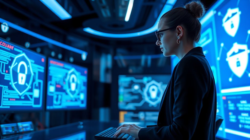 In a hybrid world, adopting zero trust security means constantly verifying identities and device health before granting access to your data. No user or device gets automatic trust; instead, you implement strict least privilege policies and network segmentation to limit movement. Technologies like ZTNA, micro-segmentation, and behavioral analysis help defend your environment from evolving threats. Overcoming integration hurdles and embracing future innovations can make your security strategy both proactive and resilient—continue exploring to build a stronger defense.