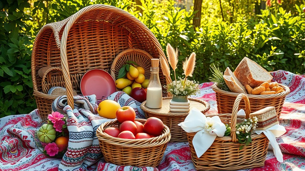 - Opt for versatile baskets that serve as both practical picnic gear and charming decor for outdoor and indoor use.