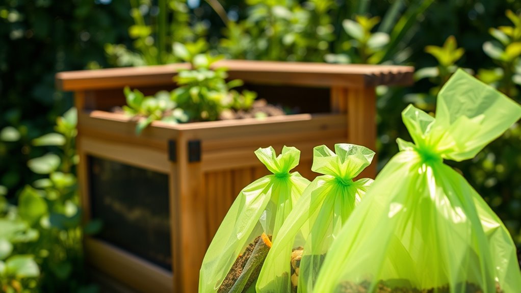 Think of compostable trash bags as friendly forest creatures—designed to blend into nature. Yes, they’re suitable for outdoor use, but with some care. I recommend using them in shaded, moist areas and avoiding harsh weather, as extreme conditions can speed up decay or cause tearing. When used properly, these bags return to the earth gently, making them perfect eco-warriors for your outdoor composting needs.