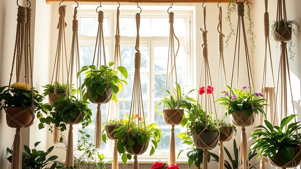 - Select handcrafted macramé plant hangers featuring boho or modern styles to complement diverse indoor decor themes.