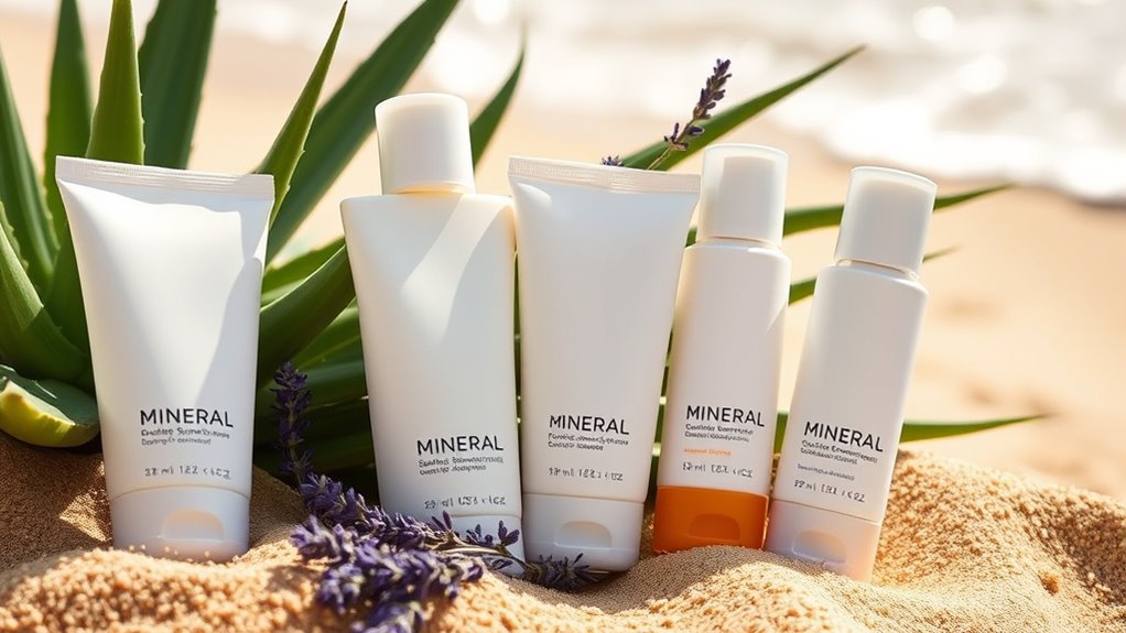 Choosing the right mineral sunscreen depends heavily on your skin type, as different formulations can address specific needs and concerns. If you have sensitive skin, look for sunscreens with gentle, non-irritating mineral filters like zinc oxide and titanium dioxide. For oily or acne-prone skin, opt for non-comedogenic, oil-free options that won’t clog pores or cause breakouts. Those with dry skin should seek out formulas containing hydrating ingredients like hyaluronic acid or ceramides to help maintain moisture. Combination skin benefits from lightweight, non-greasy sunscreens that balance hydration without excess oil or shine. If your skin is prone to redness or rosacea, choose mineral sunscreens with soothing ingredients and formulations designed to reduce irritation. Matching your skin type ensures better protection and comfort.
