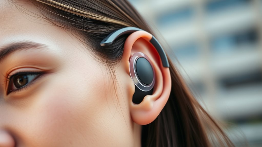 Durability and build quality guarantee that open-ear bone conduction headphones can withstand daily use, but safety features are equally important for active users. These headphones keep you aware of your surroundings by not blocking ambient sounds, which is essential during outdoor activities like running or cycling. The open design allows traffic, alerts, and conversations to come through clearly, reducing the risk of accidents. Many models include transparency modes or ambient sound settings that enhance situational awareness without sacrificing sound quality. Maintaining awareness is especially critical for safety when you’re on the move, helping you stay alert to potential hazards. Choosing headphones with these safety features ensures you can enjoy your music or calls while remaining vigilant of your environment.