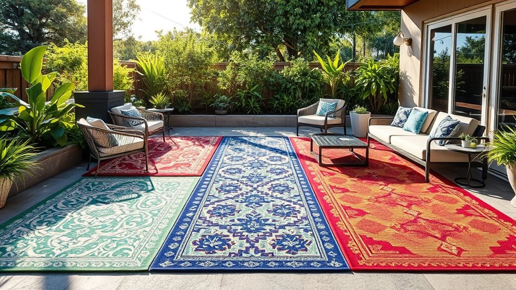 When choosing a waterproof outdoor rug, think of it as finding the perfect armor for your patio—durable yet stylish, ready to face the elements with grace. Whether you prefer bold patterns or subtle textures, there’s a rug here that’ll turn your outdoor space into a welcoming oasis. With the right rug, your patio becomes a canvas of comfort and style, weathering any storm while still shining bright like a gem in the garden.