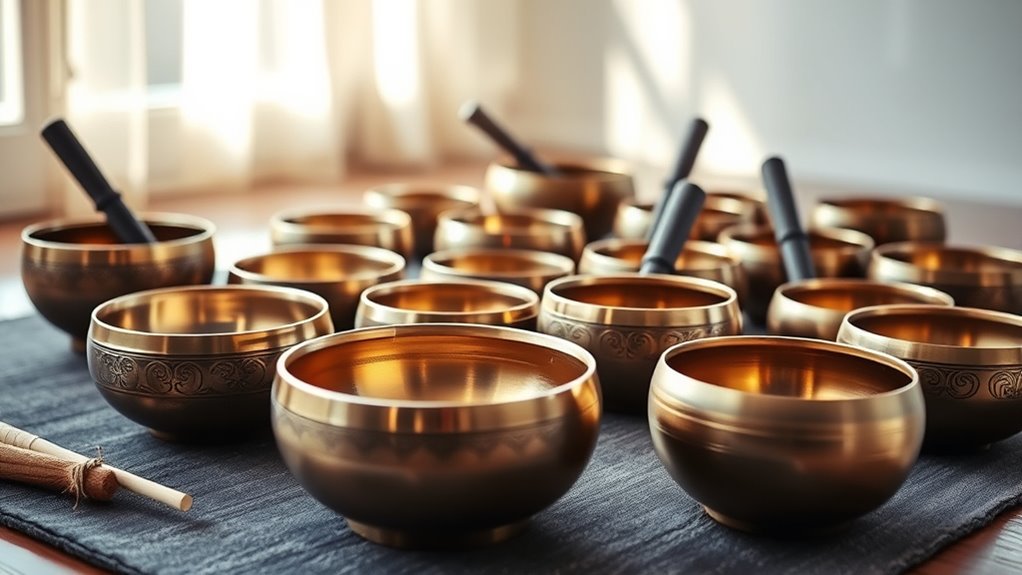 Choosing the right singing bowl set is like finding your inner compass, guiding you through peaceful waters. Whether you seek ancient wisdom or modern convenience, each set symbolizes a pathway to deeper meditation and healing. Trust your intuition to pick the one that resonates with your spirit. When you do, you’ll open a harmonious melody that echoes within, transforming your practice into a symphony of serenity and self-discovery.