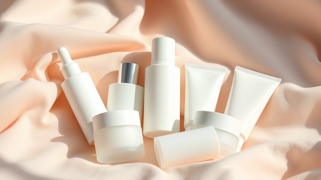 Selecting the right sunscreen for sensitive skin requires paying attention to how your skin reacts to different ingredients. I recommend choosing products labeled as hypoallergenic and formulated specifically for sensitive skin, as these minimize irritation risks. Mineral sunscreens containing zinc oxide or titanium dioxide are gentler options and less likely to cause allergic reactions than chemical filters. It’s also wise to avoid common irritants like fragrances, parabens, oxybenzone, and octinoxate, which can trigger sensitivities. For those prone to breakouts or with oily skin, non-comedogenic and oil-free formulas help prevent clogged pores. Additionally, look for soothing ingredients like aloe vera or niacinamide, which can calm irritated skin while providing sun protection. Tailoring your choice to your skin’s specific needs guarantees safer, more comfortable sun exposure.