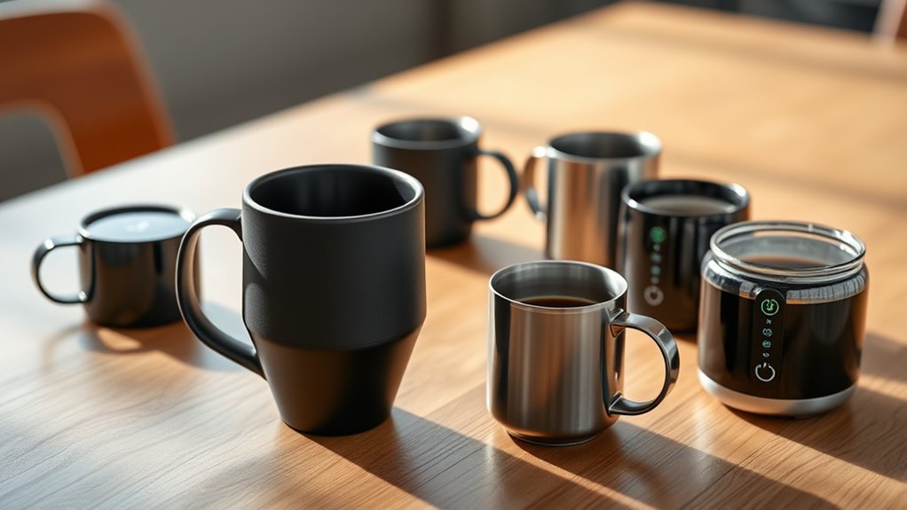 If you’re looking for the best temperature-controlled smart mugs that keep your drinks hot or cold for hours, I’ve got you covered. From sleek stainless steel designs to wireless charging options, these mugs offer precise temperature control, long battery life, and easy app integration. Whether for your home, office, or travel, they’re perfect for enjoying your favorite beverages just how you like them. Keep going, and you’ll discover which models stand out and suit your needs best.
